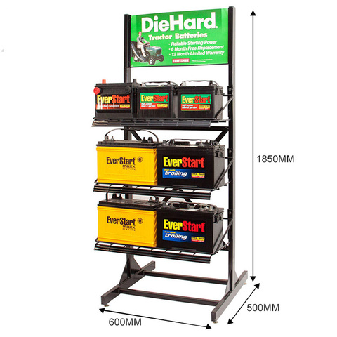Personalizado de vários andares Blue Metal Car Battery Display Rack Store Automotive Battery Display Rack Simples Bubble Wrap and Carton